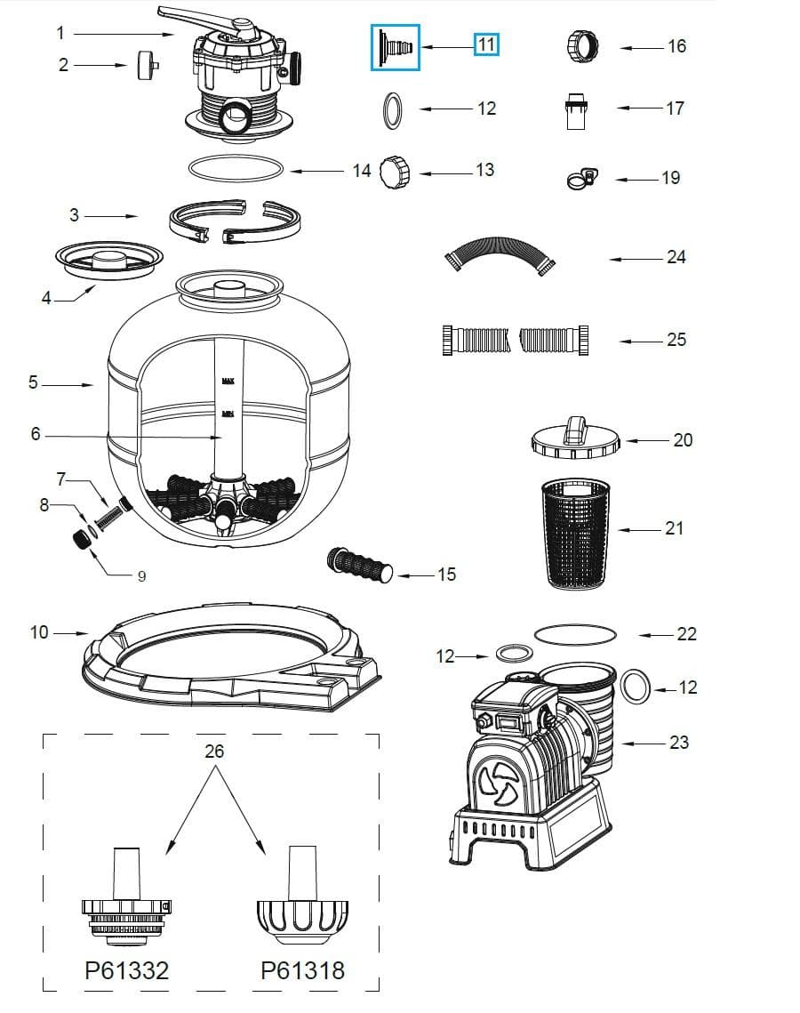 Adattatore per tubo del filtro a sabbia da 2006 l/h e 3785 l/h